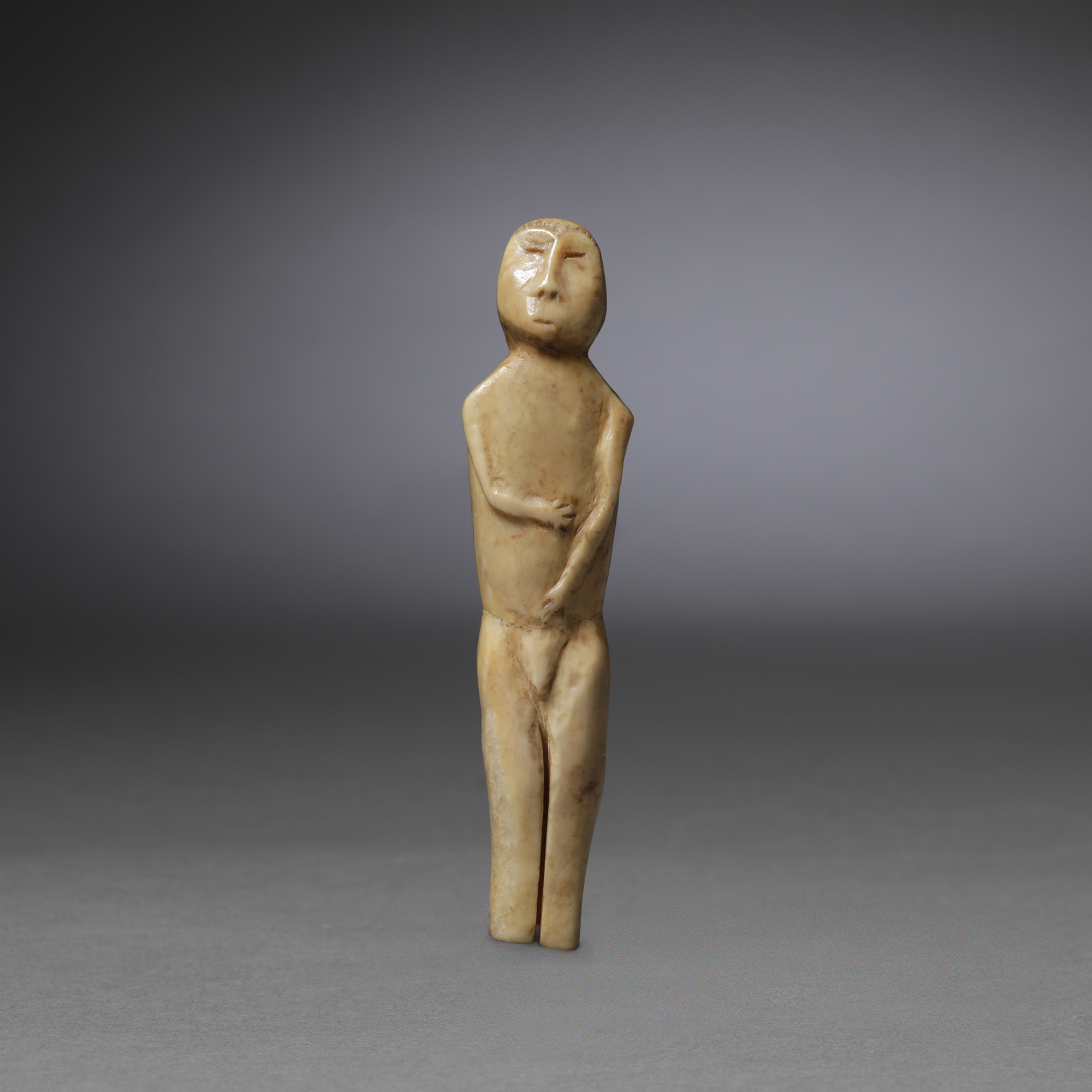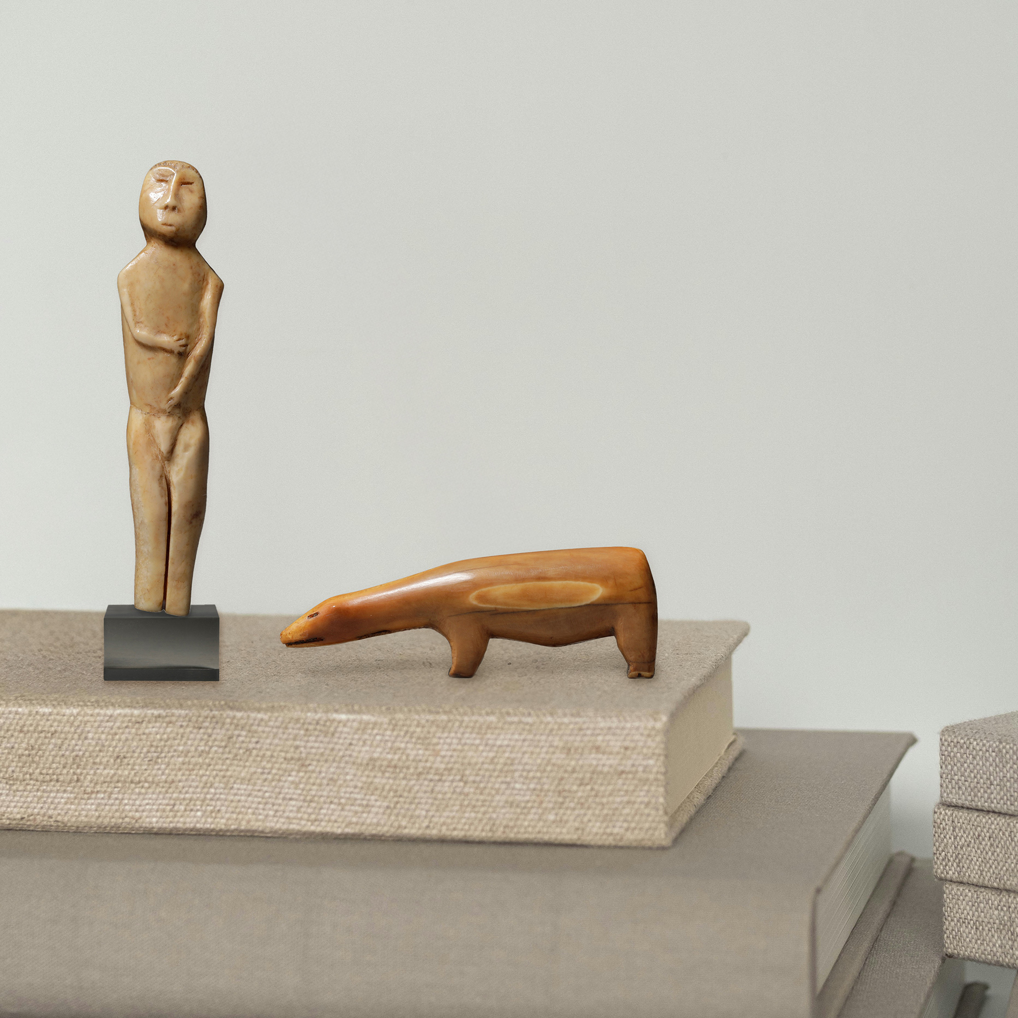 The five works assembled here comprise an exceptionally rare and evocative group of Inuit ivory dolls. Dating from the 17th century or earlier, each of them are lovingly carved with remarkable sensitivity and cultural depth. Fashioned from walrus ivory, a material prized for its durability and luminous surface, these miniature figures embody the history and storytelling traditions of Arctic life.