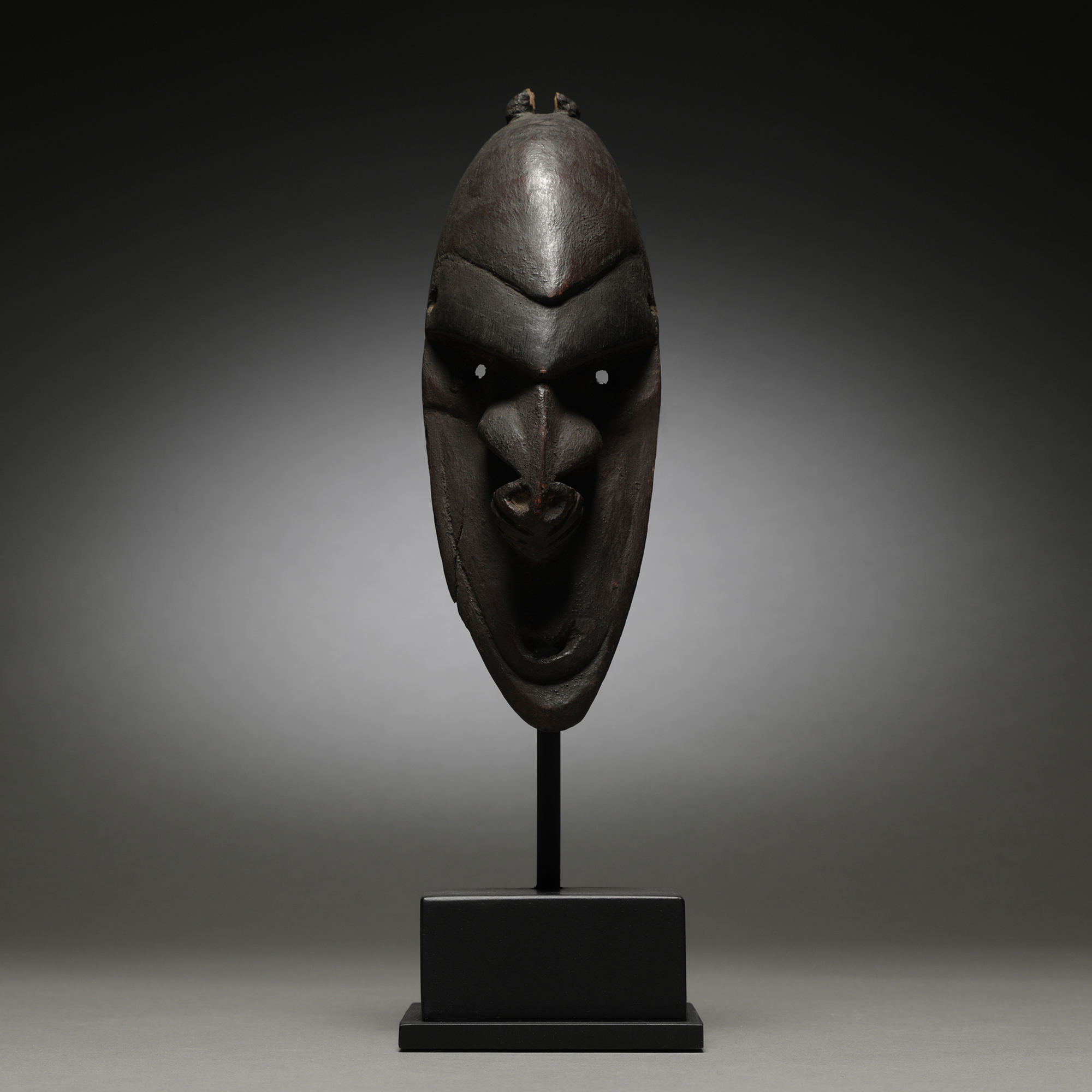 Small amulet masks made by the Sepik peoples of New Guinea, particularly from the Middle and Lower Sepik River regions, were not worn over the face like full-sized masks. Instead, they were worn suspended on necklaces, attached to clothing, or carried in personal bundles as protective charms. Believed to house the spirits of ancestors or protective beings, they played important roles in protection both physical and spiritual, ancestral connection, and ritual practice. Their design often echoed the forms of their large ceremonial counterparts, which were used in dances and rituals.